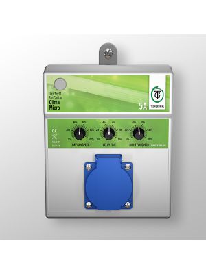 To create an optimal grow climate, it is important that the air in the room is ventilated sufficiently. Also very important is to control the temperature day and night. There are several products available for controlling the climate in your grow room. For example, a climate controller for the temperature, a fan for proper air circulation and heating for the period that no lights are on. Check out our range of products to see what kind of possibilities there are.